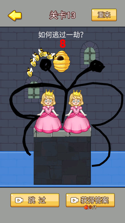 手机版贵妃来了轻松有趣,成功地将贵妃和蜜蜂不同的元素融入到游戏中,让玩家脑洞打开,通过画线的形式,发散思维,来帮助贵妃避免受到蜜蜂攻击。玩家可以操作的玩法千奇百怪,没有固定的技巧,只要在系统规定的时间内,能够保护贵妃的安全,就可以顺利通过关卡。